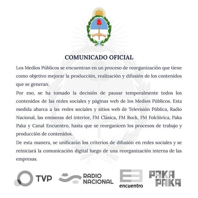 Desde hoy, el apagón en redes sociales de los medios públicos inicia la etapa previa a su privatización y desmantelamiento.